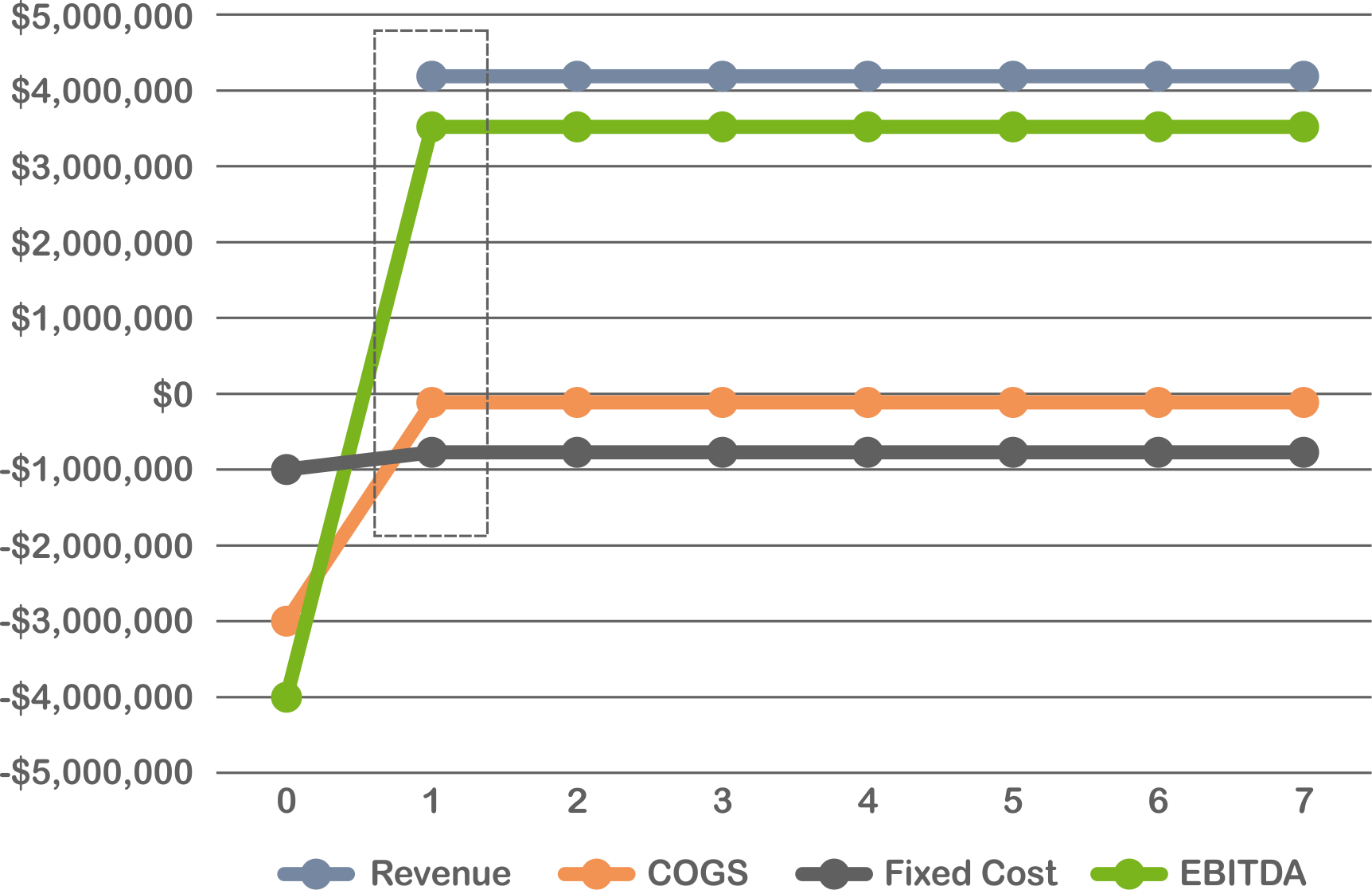 | COGS | $ (3,087,600) | $ (87,600) | $ (87,600) | $ (87,600) |
